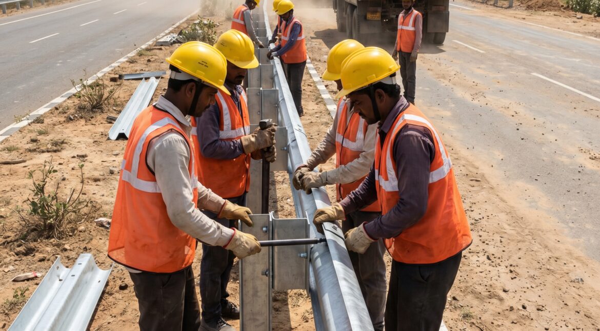 Executed crash barrier work for expressway with proper spacing and fixing. Focused on safety compliance and efficient installation.